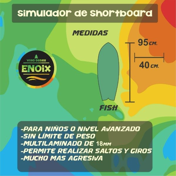 Es el modelo más corto de nuestras tablas. Su tamaño permite practicar giros, el bombeo en la tabla de quien ya tiene algo de experiencia en el surfing, y saltos de skate como el ollie.